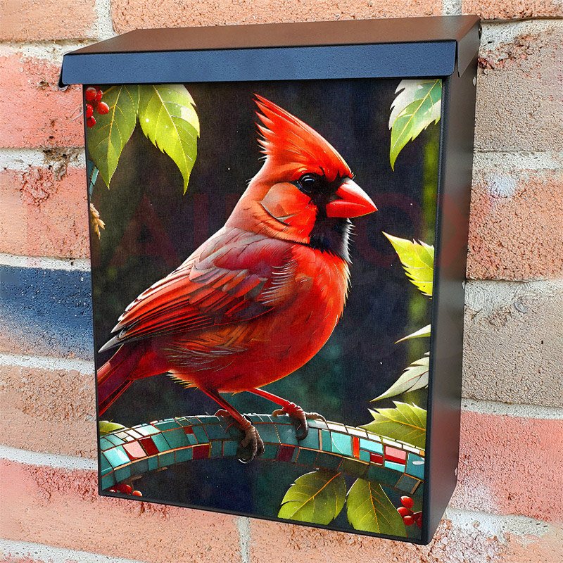 This Cardinal on a Mosaic Branch mailbox design was created by Krisztina Soos