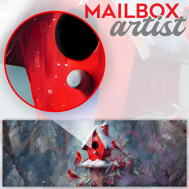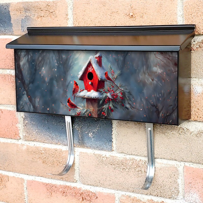 Applying your Cardinals and Winter Birdhouse townhouse / ranch mailbox cover it’s pretty easy to convert your mailbox to a special and unique item. These covers require a flat surface, so they work with townhouse / ranch mailboxes that do not have any embossed decoration or signs. Magnetic mailbox covers work with steel boxes, for aluminum and plastic boxes we offer the self-adhesive vinyl covers. In case your mailbox doesn’t work with these covers, you can purchase the preinstalled cover on a brand new mailbox as well. Also, you can create your custom townhouse / ranch mailbox cover using you own pictures, adding your name, street number, etc.