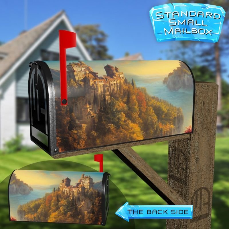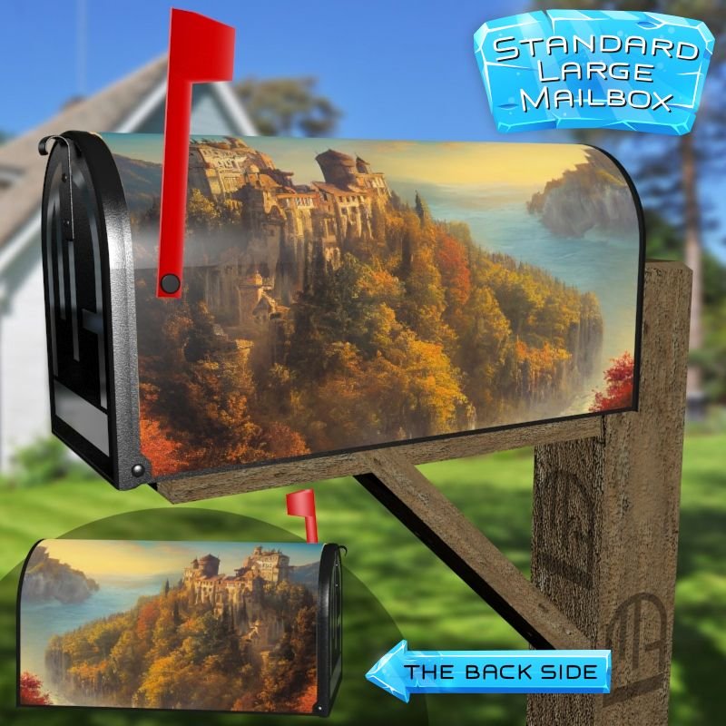 Dressing up your rural farm mailbox with the Castle on the Hills mailbox cover is an easy way to convert it into a unique and special item. These covers require a smooth surface, so they are compatible with rural farm mailboxes that do not have any embossed decorations or signs. Magnetic mailbox covers work with steel boxes only, while self-adhesive vinyl covers are available for aluminum, plastic and steel boxes. If your mailbox is not compatible with these covers, you can purchase a brand new mailbox with a preinstalled cover. Additionally, you have the option to create a custom rural farm mailbox cover with your own pictures, name, street number, etc.