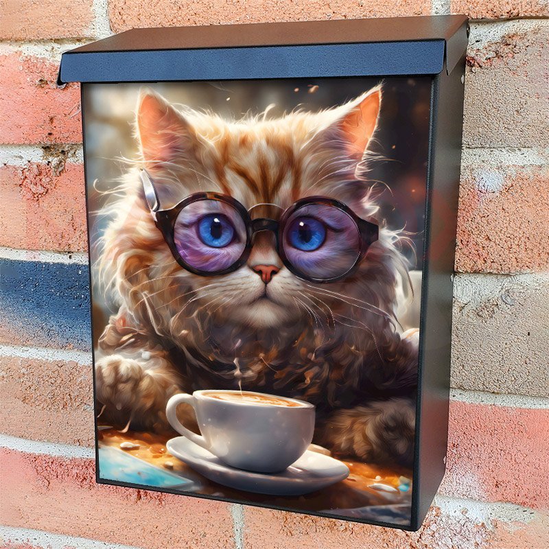 With this Cat in the Cyber Cafe colonial mailbox cover it’s pretty easy to convert your mailbox to a special and unique item. These covers require a flat surface, so they work with colonial mailboxes that do not have any embossed decoration or signs. Magnetic mailbox covers work with steel colonial boxes only, while self-adhesive vinyl covers are available for aluminum, plastic and steel boxes. We also offer both self-adhesive and magnetic covers with regular opaque white vinyl or reflective vinyl, which works similarly to license plates or road signs. The reflective option makes the entire cover’s surface reflective, ensuring visibility at night. In case your mailbox doesn’t work with these covers, you can purchase the preinstalled cover on a brand new mailbox as well. Also, you can create your custom colonial mailbox cover using you own pictures, adding your name, street number, etc.