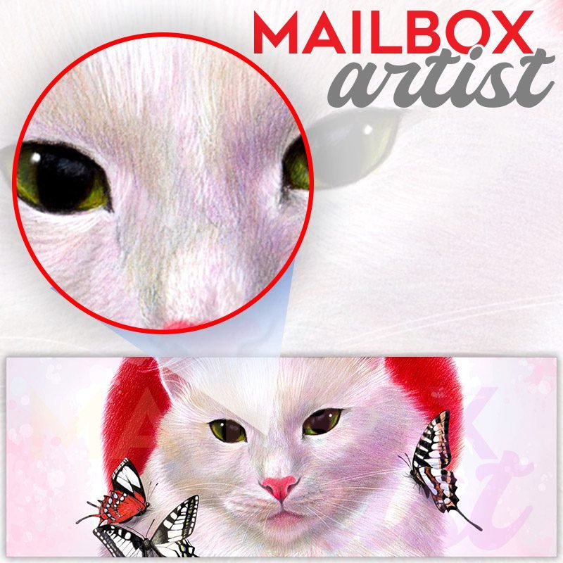 Applying your Cat with Butterflies townhouse / ranch mailbox cover it’s pretty easy to convert your mailbox to a special and unique item. These covers require a flat surface, so they work with townhouse / ranch mailboxes that do not have any embossed decoration or signs. Magnetic mailbox covers work with steel boxes, for aluminum and plastic boxes we offer the self-adhesive vinyl covers. In case your mailbox doesn’t work with these covers, you can purchase the preinstalled cover on a brand new mailbox as well. Also, you can create your custom townhouse / ranch mailbox cover using you own pictures, adding your name, street number, etc.