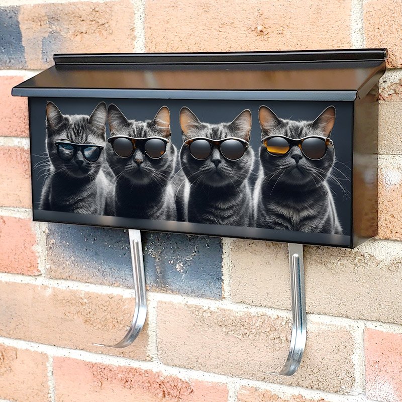 Applying your Cats With Sunglasses On Dark Background townhouse / ranch mailbox cover it’s pretty easy to convert your mailbox to a special and unique item. These covers require a flat surface, so they work with townhouse / ranch mailboxes that do not have any embossed decoration or signs. Magnetic mailbox covers work with steel boxes, for aluminum and plastic boxes we offer the self-adhesive vinyl covers. In case your mailbox doesn’t work with these covers, you can purchase the preinstalled cover on a brand new mailbox as well. Also, you can create your custom townhouse / ranch mailbox cover using you own pictures, adding your name, street number, etc.