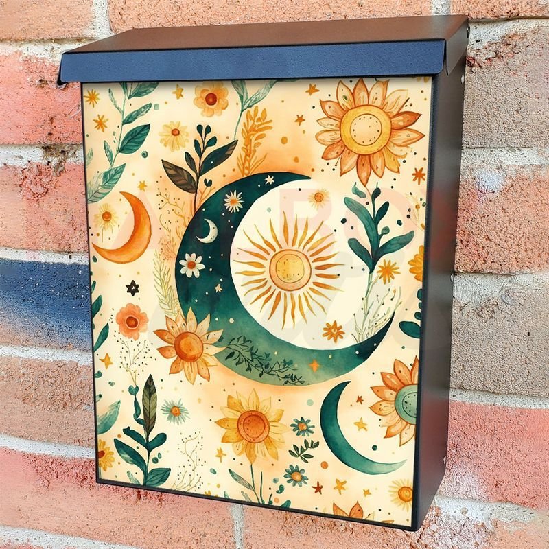 This Celestial Moon and Sun #2 mailbox design was created by Krisztina Soos