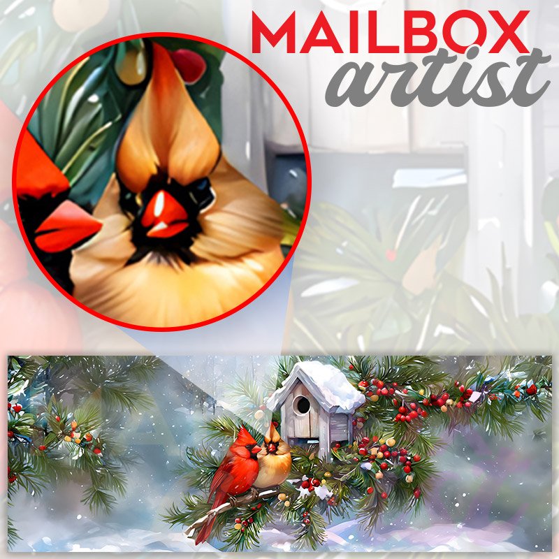 This Christmas Cardinal Couple and Birdhouse mailbox design was created by Krisztina Soos