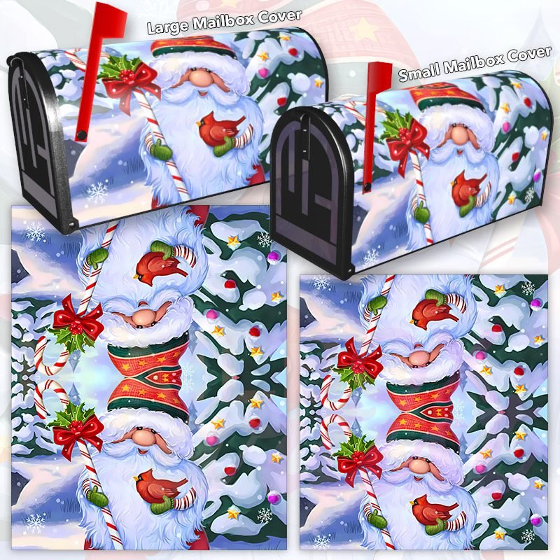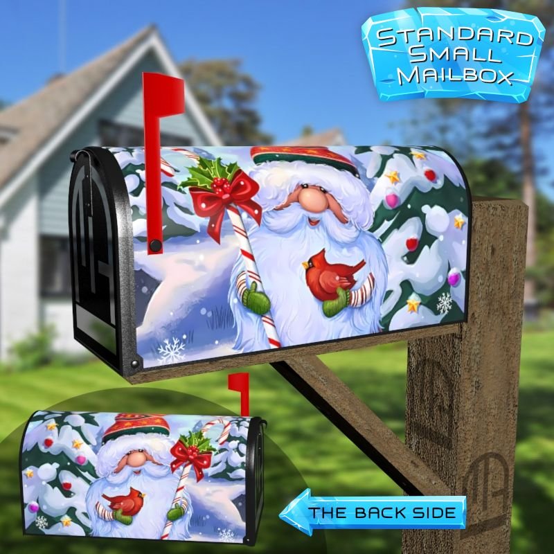 Dressing up your rural farm mailbox with the Christmas Gnome with a Cardinal mailbox cover is an easy way to convert it into a unique and special item. These covers require a smooth surface, so they are compatible with rural farm mailboxes that do not have any embossed decorations or signs. Magnetic mailbox covers work with steel boxes only, while self-adhesive vinyl covers are available for aluminum, plastic and steel boxes. If your mailbox is not compatible with these covers, you can purchase a brand new mailbox with a preinstalled cover. Additionally, you have the option to create a custom rural farm mailbox cover with your own pictures, name, street number, etc.
