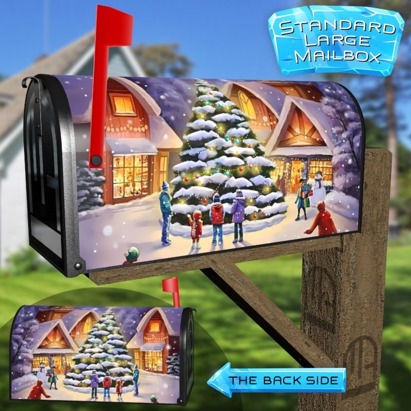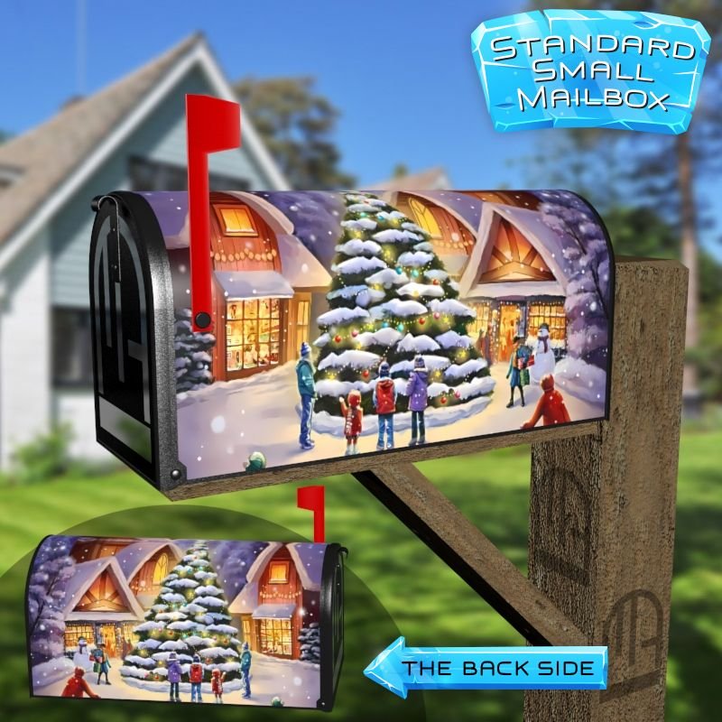 Dressing up your rural farm mailbox with the Christmas in the Little Town mailbox cover is an easy way to convert it into a unique and special item. These covers require a smooth surface, so they are compatible with rural farm mailboxes that do not have any embossed decorations or signs. Magnetic mailbox covers work with steel boxes only, while self-adhesive vinyl covers are available for aluminum, plastic and steel boxes. If your mailbox is not compatible with these covers, you can purchase a brand new mailbox with a preinstalled cover. Additionally, you have the option to create a custom rural farm mailbox cover with your own pictures, name, street number, etc.