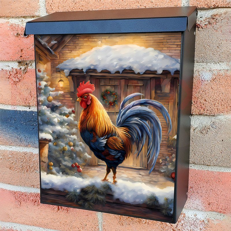 Christmas Rooster on the Porch Colonial Mailbox Cover