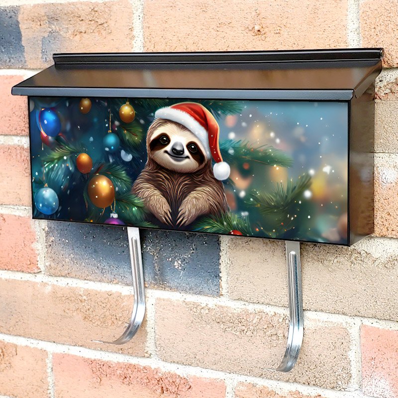 Applying your Christmas Sloth in Santa Hat townhouse / ranch mailbox cover it’s pretty easy to convert your mailbox to a special and unique item. These covers require a flat surface, so they work with townhouse / ranch mailboxes that do not have any embossed decoration or signs. Magnetic mailbox covers work with steel boxes, for aluminum and plastic boxes we offer the self-adhesive vinyl covers. In case your mailbox doesn’t work with these covers, you can purchase the preinstalled cover on a brand new mailbox as well. Also, you can create your custom townhouse / ranch mailbox cover using you own pictures, adding your name, street number, etc.