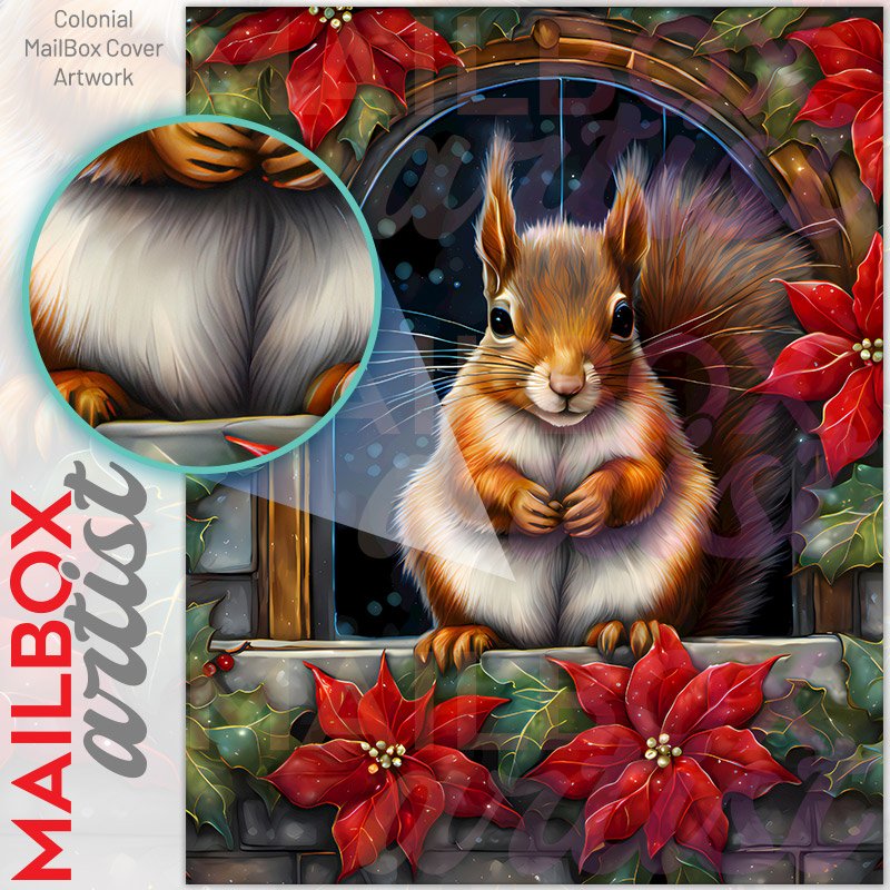 With this Christmas Squirrel at the Window colonial mailbox cover it’s pretty easy to convert your mailbox to a special and unique item. These covers require a flat surface, so they work with colonial mailboxes that do not have any embossed decoration or signs. Magnetic mailbox covers work with steel colonial boxes only, while self-adhesive vinyl covers are available for aluminum, plastic and steel boxes. We also offer both self-adhesive and magnetic covers with regular opaque white vinyl or reflective vinyl, which works similarly to license plates or road signs. The reflective option makes the entire cover’s surface reflective, ensuring visibility at night. In case your mailbox doesn’t work with these covers, you can purchase the preinstalled cover on a brand new mailbox as well. Also, you can create your custom colonial mailbox cover using you own pictures, adding your name, street number, etc.