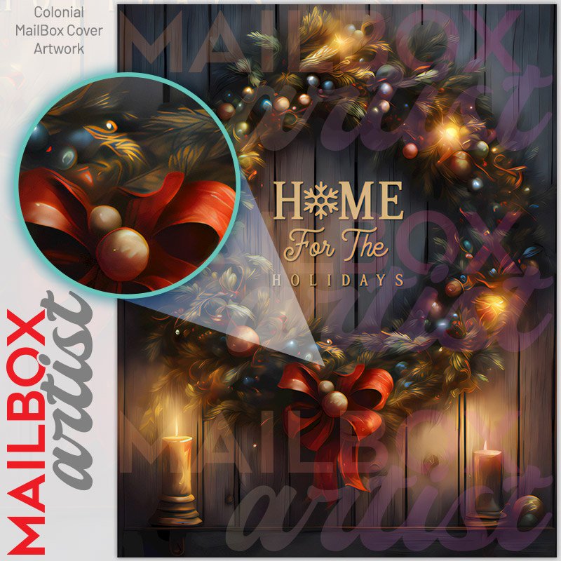 Christmas Wreath and Candles Colonial Mailbox Cover