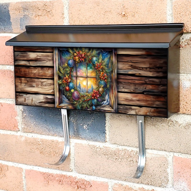 Christmas Wreath with Winter Landscape Townhouse Mailbox Cover