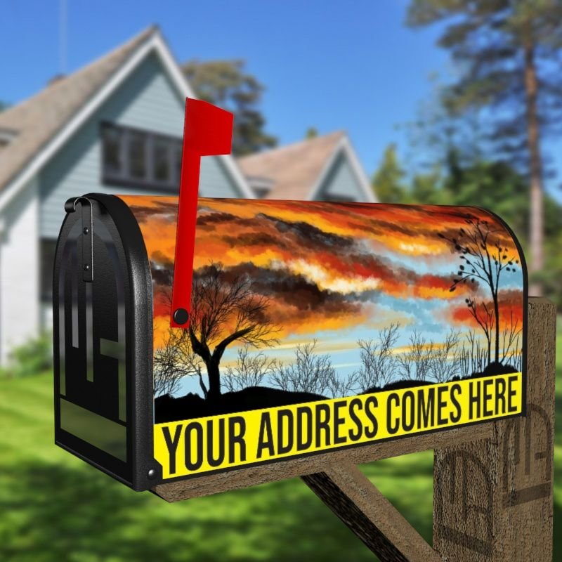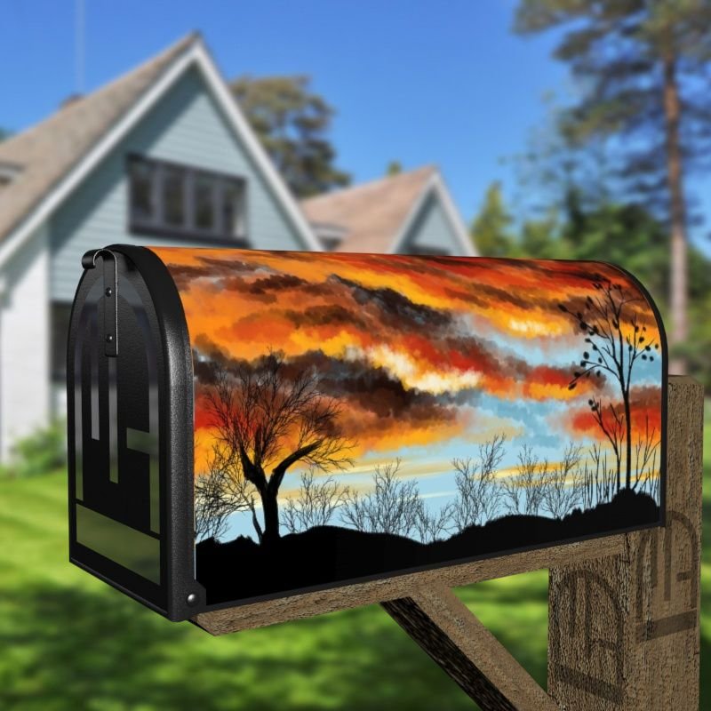 Grab this creative Cold November Morning rural/curbside/farm mailbox cover as self adhesive vinyl or magnetic cover. Our magnetic covers have the magnetic surface under the whole design, not only two magnet strips like in cheaper products. We also offer both the self adhesive and the magnetic covers with regular opaque white vinyl or reflective vinyl which works the same way as the licence plates or road signs; pretty visible at night. We make these covers for both large and small mailboxes.