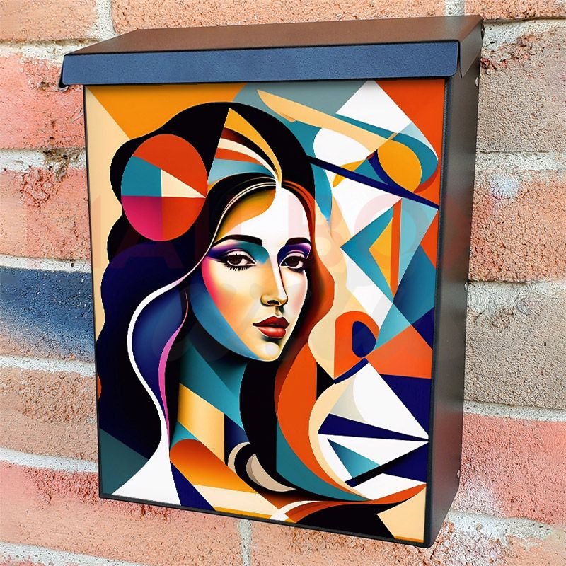 With this Colorful Art Nouveau Girl #2 colonial mailbox cover it’s pretty easy to convert your mailbox to a special and unique item. These covers require a flat surface, so they work with colonial mailboxes that do not have any embossed decoration or signs. Magnetic mailbox covers work with steel colonial boxes only, while self-adhesive vinyl covers are available for aluminum, plastic and steel boxes. We also offer both self-adhesive and magnetic covers with regular opaque white vinyl or reflective vinyl, which works similarly to license plates or road signs. The reflective option makes the entire cover’s surface reflective, ensuring visibility at night. In case your mailbox doesn’t work with these covers, you can purchase the preinstalled cover on a brand new mailbox as well. Also, you can create your custom colonial mailbox cover using you own pictures, adding your name, street number, etc.