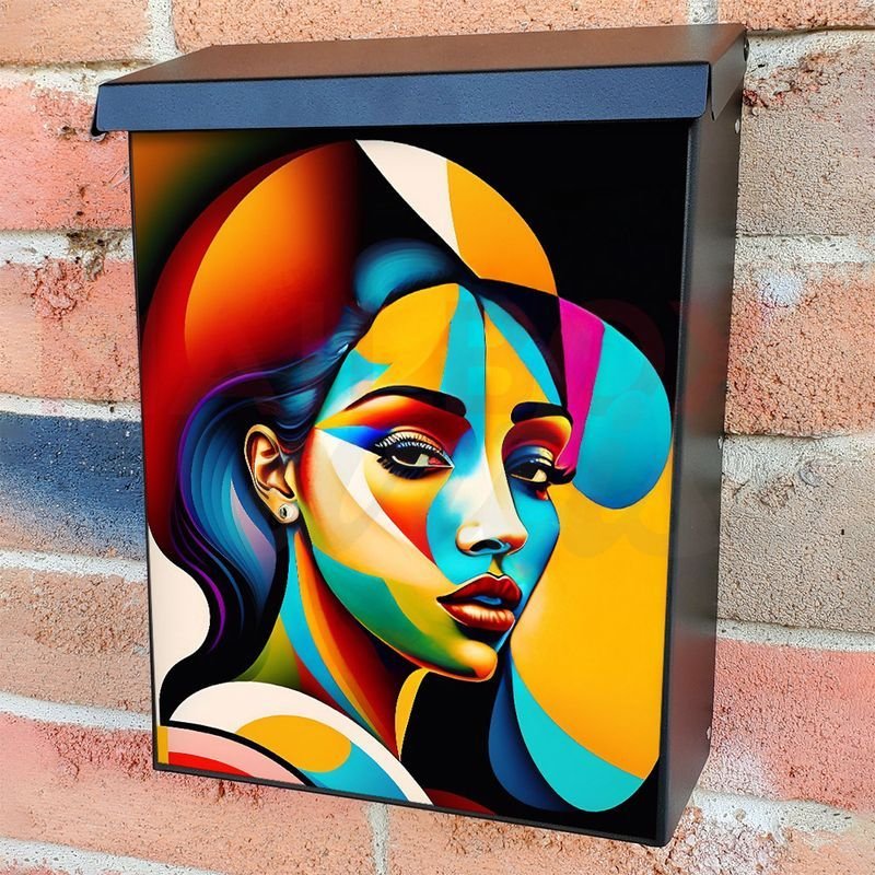 With this Colorful Art Nouveau Girl colonial mailbox cover it’s pretty easy to convert your mailbox to a special and unique item. These covers require a flat surface, so they work with colonial mailboxes that do not have any embossed decoration or signs. In case your mailbox doesn’t work with these covers, you can purchase the preinstalled cover on a brand new mailbox as well. Also, you can create your custom colonial mailbox cover using you own pictures, adding your name, street number, etc.