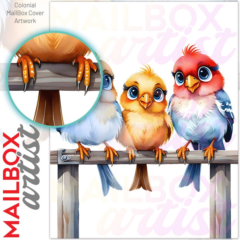 This Colorful Bird Trio 2 mailbox design was created by Krisztina Soos