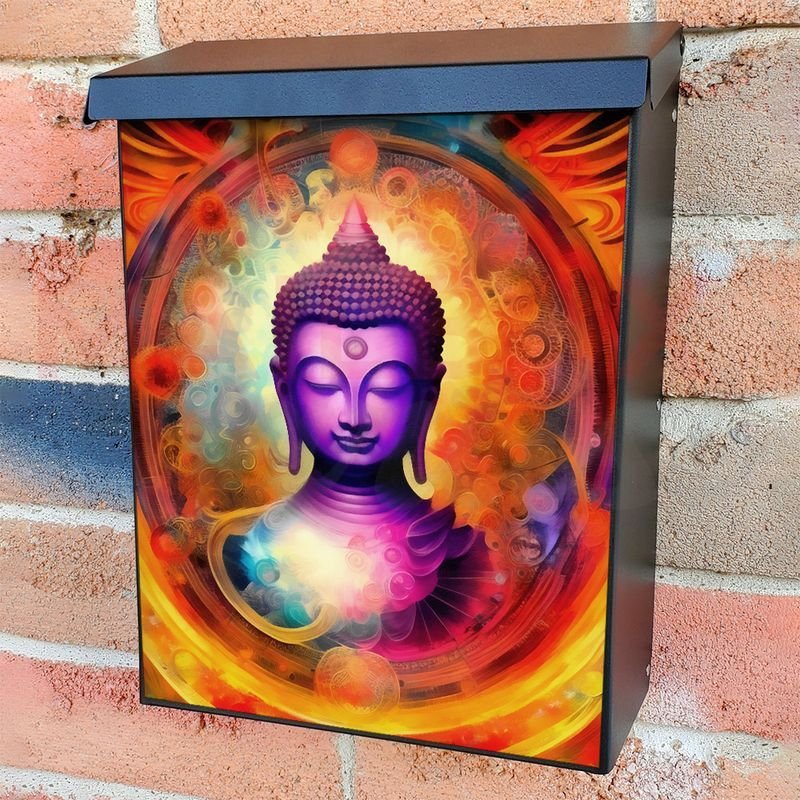 With this Colorful Buddha Statue colonial mailbox cover it’s pretty easy to convert your mailbox to a special and unique item. These covers require a flat surface, so they work with colonial mailboxes that do not have any embossed decoration or signs. In case your mailbox doesn’t work with these covers, you can purchase the preinstalled cover on a brand new mailbox as well. Also, you can create your custom colonial mailbox cover using you own pictures, adding your name, street number, etc.