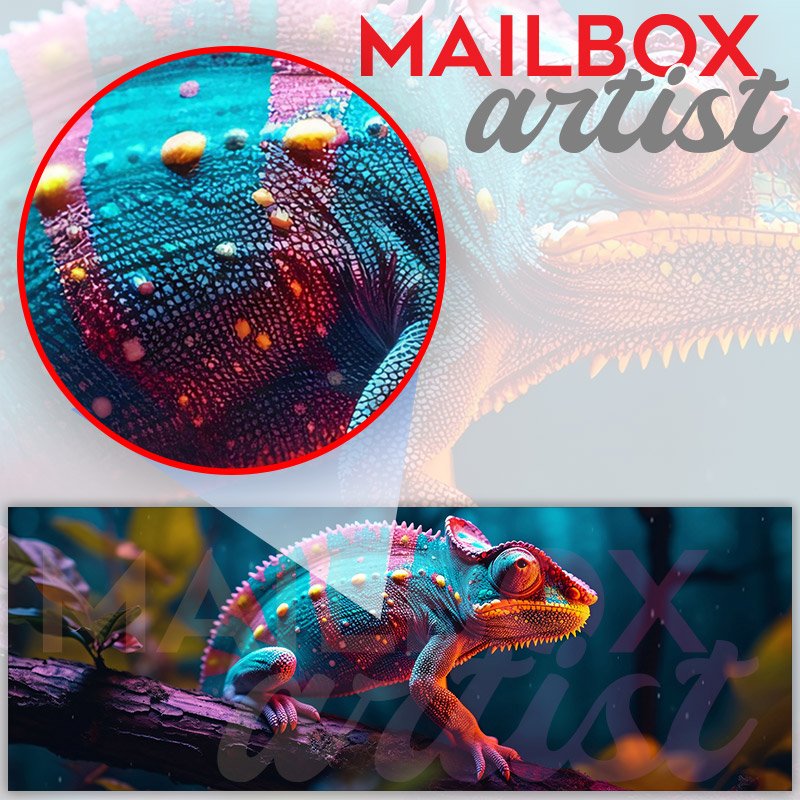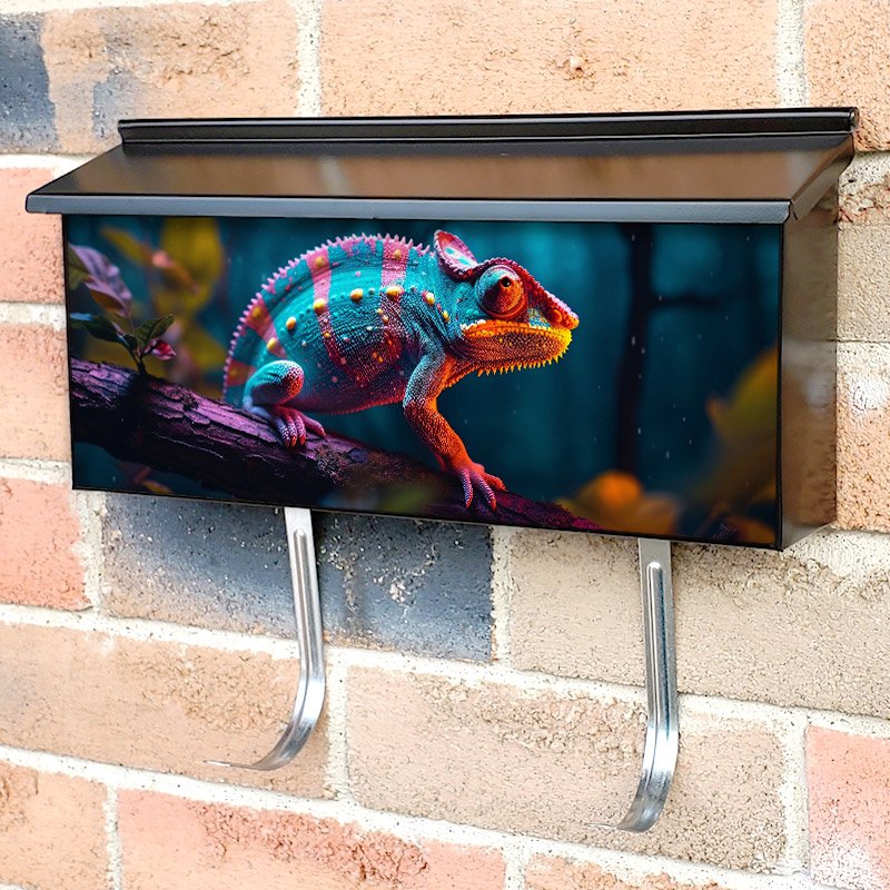 Applying your Colorful Chameleon Perched On A Tree Branch townhouse / ranch mailbox cover it’s pretty easy to convert your mailbox to a special and unique item. These covers require a flat surface, so they work with townhouse / ranch mailboxes that do not have any embossed decoration or signs. Magnetic mailbox covers work with steel boxes, for aluminum and plastic boxes we offer the self-adhesive vinyl covers. In case your mailbox doesn’t work with these covers, you can purchase the preinstalled cover on a brand new mailbox as well. Also, you can create your custom townhouse / ranch mailbox cover using you own pictures, adding your name, street number, etc.