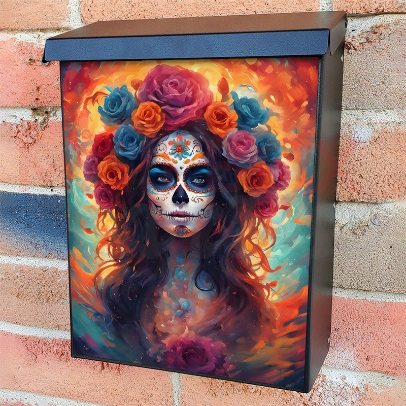 This Colorful Dreamy Sugar Skull Girl mailbox design was created by Krisztina Soos