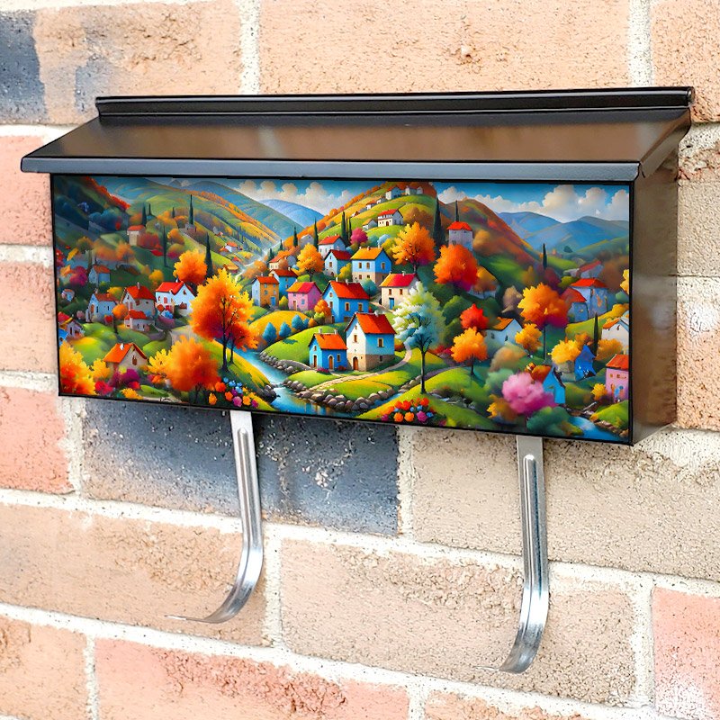 Applying your Colorful European Town townhouse / ranch mailbox cover it’s pretty easy to convert your mailbox to a special and unique item. These covers require a flat surface, so they work with townhouse / ranch mailboxes that do not have any embossed decoration or signs. Magnetic mailbox covers work with steel boxes, for aluminum and plastic boxes we offer the self-adhesive vinyl covers. In case your mailbox doesn’t work with these covers, you can purchase the preinstalled cover on a brand new mailbox as well. Also, you can create your custom townhouse / ranch mailbox cover using you own pictures, adding your name, street number, etc.