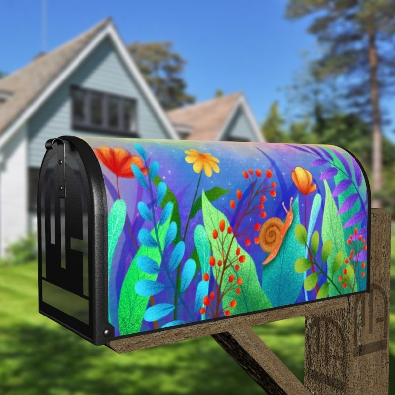 Grab this creative Colorful Fairy Garden rural/curbside/farm mailbox cover as self adhesive vinyl or magnetic cover. Our magnetic covers have the magnetic surface under the whole design, not only two magnet strips like in cheaper products. We also offer both the self adhesive and the magnetic covers with regular opaque white vinyl or reflective vinyl which works the same way as the licence plates or road signs; pretty visible at night. We make these covers for both large and small mailboxes.
