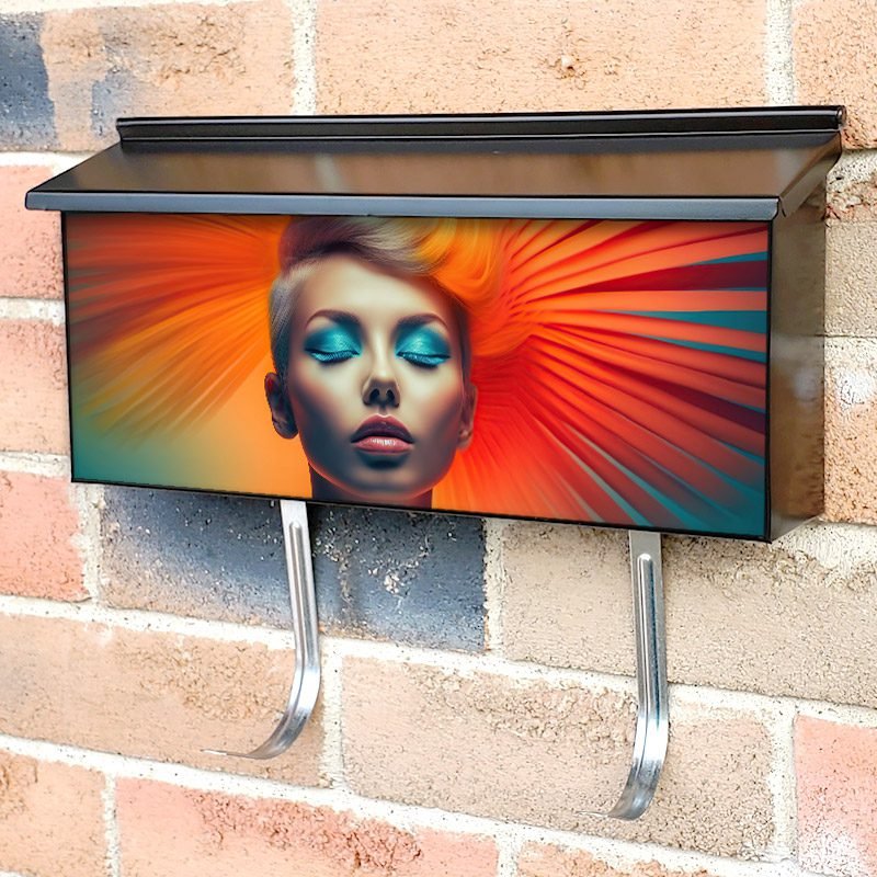 Applying your Colorful Fashion Portrait Female townhouse / ranch mailbox cover it’s pretty easy to convert your mailbox to a special and unique item. These covers require a flat surface, so they work with townhouse / ranch mailboxes that do not have any embossed decoration or signs. Magnetic mailbox covers work with steel boxes, for aluminum and plastic boxes we offer the self-adhesive vinyl covers. In case your mailbox doesn’t work with these covers, you can purchase the preinstalled cover on a brand new mailbox as well. Also, you can create your custom townhouse / ranch mailbox cover using you own pictures, adding your name, street number, etc.