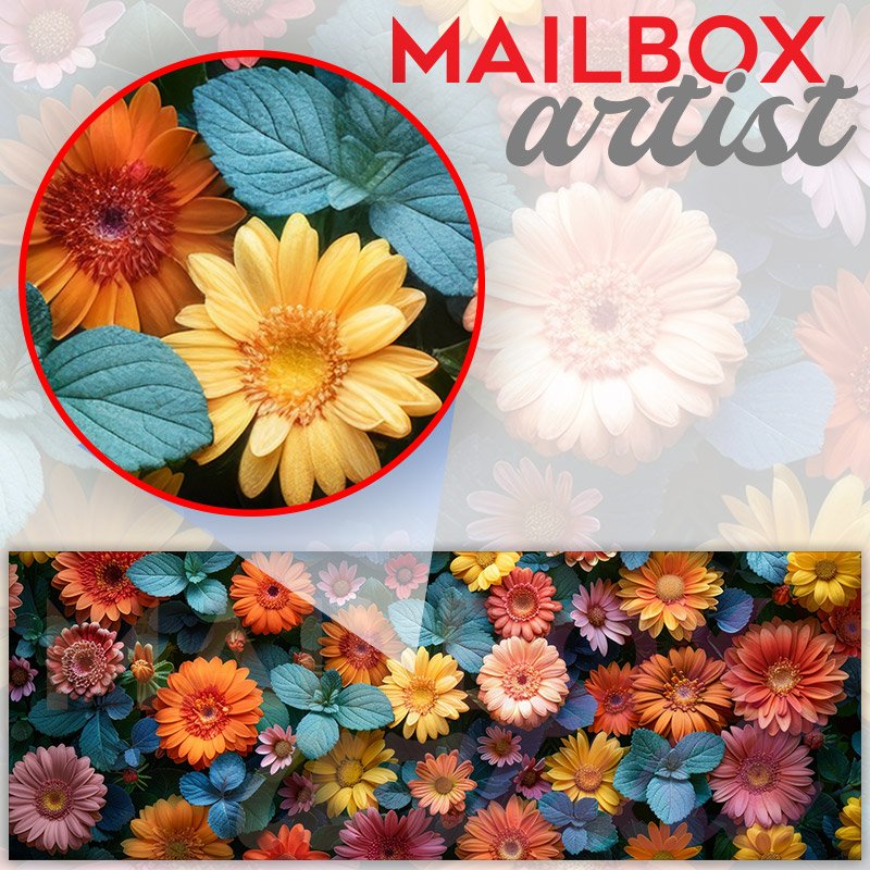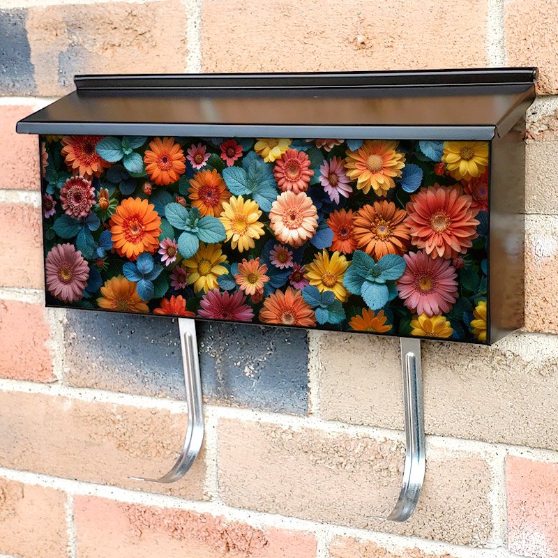 Applying your Colorful Flowers In The Garden townhouse / ranch mailbox cover it’s pretty easy to convert your mailbox to a special and unique item. These covers require a flat surface, so they work with townhouse / ranch mailboxes that do not have any embossed decoration or signs. Magnetic mailbox covers work with steel boxes, for aluminum and plastic boxes we offer the self-adhesive vinyl covers. In case your mailbox doesn’t work with these covers, you can purchase the preinstalled cover on a brand new mailbox as well. Also, you can create your custom townhouse / ranch mailbox cover using you own pictures, adding your name, street number, etc.