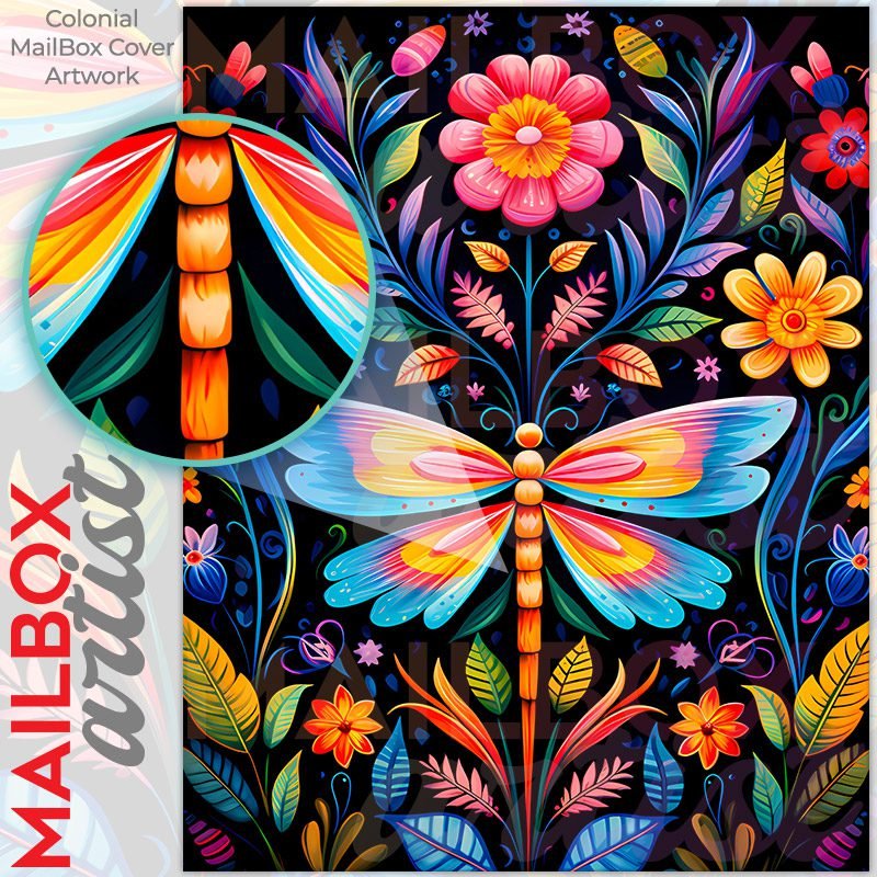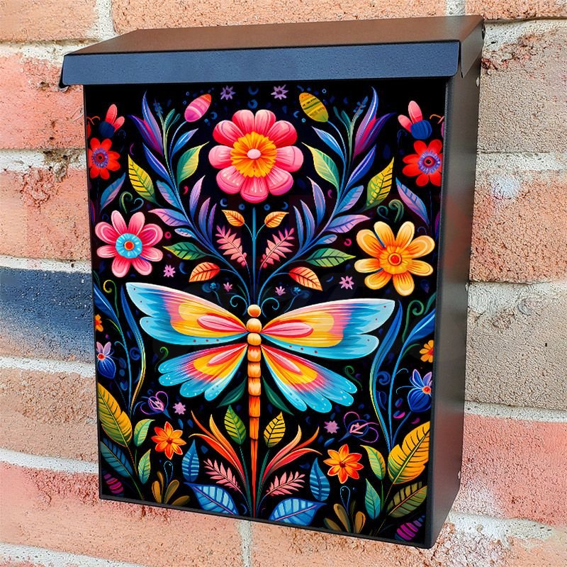 With this Colorful Folk Butterfly Design colonial mailbox cover it’s pretty easy to convert your mailbox to a special and unique item. These covers require a flat surface, so they work with colonial mailboxes that do not have any embossed decoration or signs. Magnetic mailbox covers work with steel colonial boxes only, while self-adhesive vinyl covers are available for aluminum, plastic and steel boxes. We also offer both self-adhesive and magnetic covers with regular opaque white vinyl or reflective vinyl, which works similarly to license plates or road signs. The reflective option makes the entire cover’s surface reflective, ensuring visibility at night. In case your mailbox doesn’t work with these covers, you can purchase the preinstalled cover on a brand new mailbox as well. Also, you can create your custom colonial mailbox cover using you own pictures, adding your name, street number, etc.