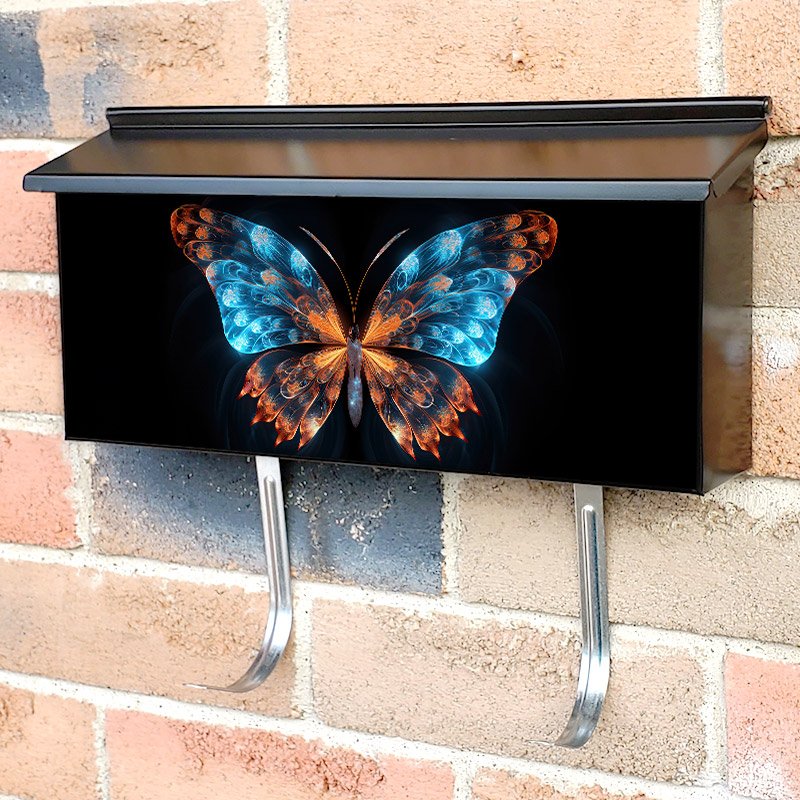Applying your Colorful Fractal Xray Glowing Butterfly townhouse / ranch mailbox cover it’s pretty easy to convert your mailbox to a special and unique item. These covers require a flat surface, so they work with townhouse / ranch mailboxes that do not have any embossed decoration or signs. Magnetic mailbox covers work with steel boxes, for aluminum and plastic boxes we offer the self-adhesive vinyl covers. In case your mailbox doesn’t work with these covers, you can purchase the preinstalled cover on a brand new mailbox as well. Also, you can create your custom townhouse / ranch mailbox cover using you own pictures, adding your name, street number, etc.
