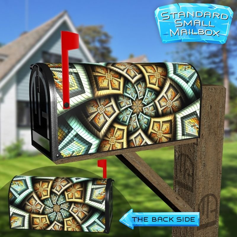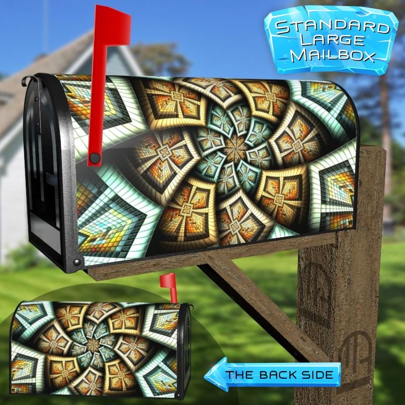 Dressing up your rural farm mailbox with the Colorful Mosaic Design #2 mailbox cover is an easy way to convert it into a unique and special item. These covers require a smooth surface, so they are compatible with rural farm mailboxes that do not have any embossed decorations or signs. Magnetic mailbox covers work with steel boxes only, while self-adhesive vinyl covers are available for aluminum, plastic and steel boxes. If your mailbox is not compatible with these covers, you can purchase a brand new mailbox with a preinstalled cover. Additionally, you have the option to create a custom rural farm mailbox cover with your own pictures, name, street number, etc.