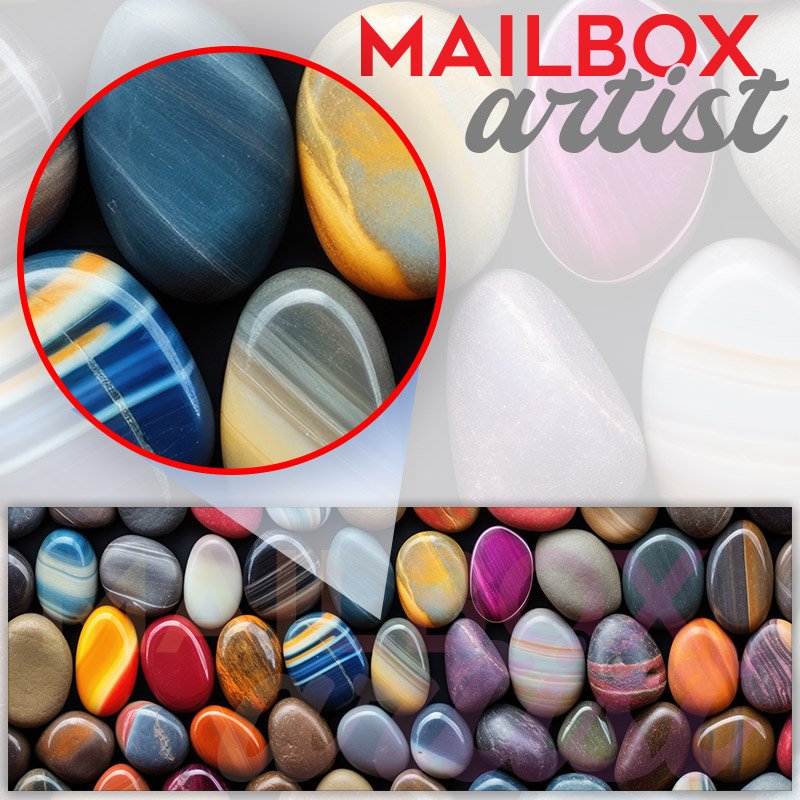 This Colorful Rocks And Pebbles mailbox design was created by Krisztina Soos