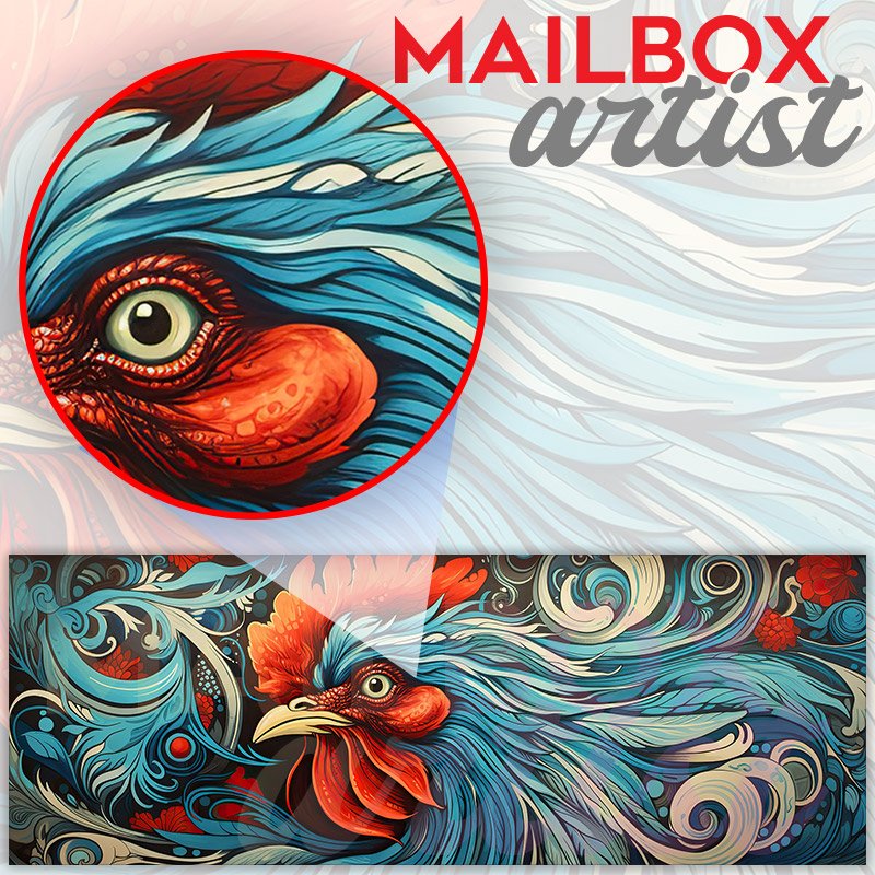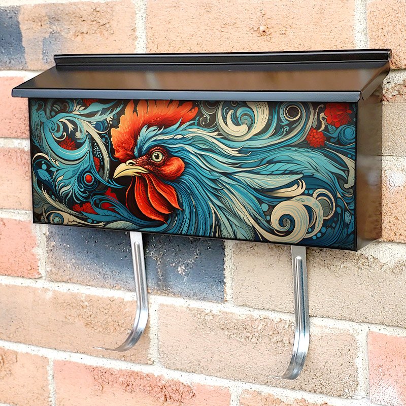 Applying your Colorful Rooster Illustration 3 townhouse / ranch mailbox cover it’s pretty easy to convert your mailbox to a special and unique item. These covers require a flat surface, so they work with townhouse / ranch mailboxes that do not have any embossed decoration or signs. Magnetic mailbox covers work with steel boxes, for aluminum and plastic boxes we offer the self-adhesive vinyl covers. In case your mailbox doesn’t work with these covers, you can purchase the preinstalled cover on a brand new mailbox as well. Also, you can create your custom townhouse / ranch mailbox cover using you own pictures, adding your name, street number, etc.