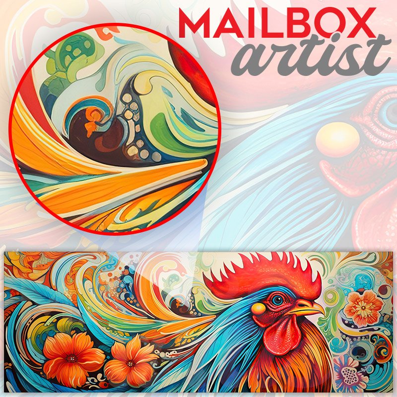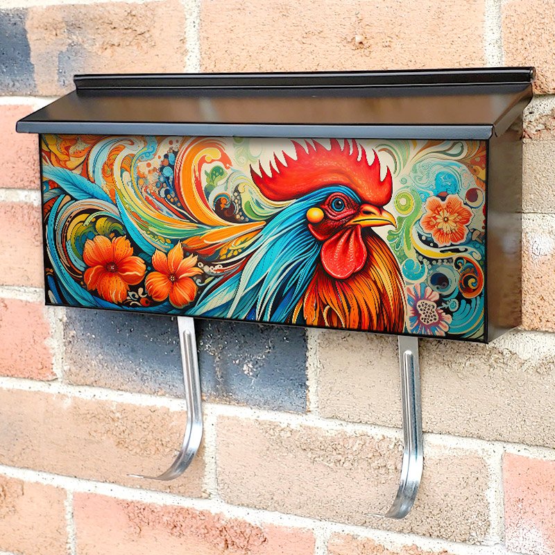 Applying your Colorful Rooster Illustration 5 townhouse / ranch mailbox cover it’s pretty easy to convert your mailbox to a special and unique item. These covers require a flat surface, so they work with townhouse / ranch mailboxes that do not have any embossed decoration or signs. Magnetic mailbox covers work with steel boxes, for aluminum and plastic boxes we offer the self-adhesive vinyl covers. In case your mailbox doesn’t work with these covers, you can purchase the preinstalled cover on a brand new mailbox as well. Also, you can create your custom townhouse / ranch mailbox cover using you own pictures, adding your name, street number, etc.