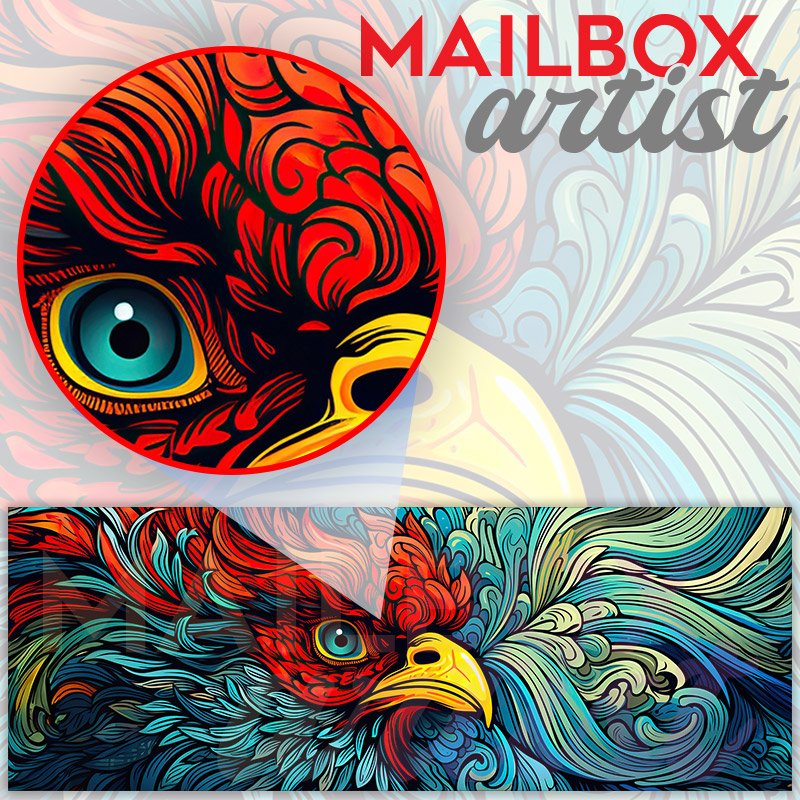 This Colorful Rooster Illustration 6 mailbox design was created by Krisztina Soos
