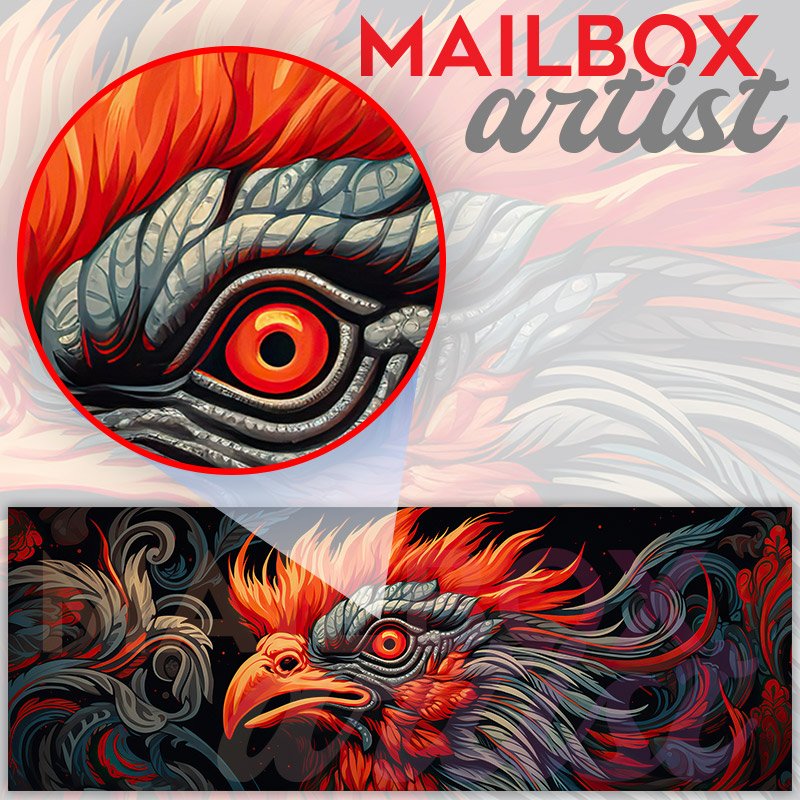 This Colorful Rooster Illustration mailbox design was created by Krisztina Soos