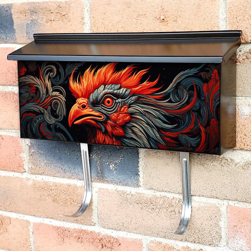 Applying your Colorful Rooster Illustration townhouse / ranch mailbox cover it’s pretty easy to convert your mailbox to a special and unique item. These covers require a flat surface, so they work with townhouse / ranch mailboxes that do not have any embossed decoration or signs. Magnetic mailbox covers work with steel boxes, for aluminum and plastic boxes we offer the self-adhesive vinyl covers. In case your mailbox doesn’t work with these covers, you can purchase the preinstalled cover on a brand new mailbox as well. Also, you can create your custom townhouse / ranch mailbox cover using you own pictures, adding your name, street number, etc.