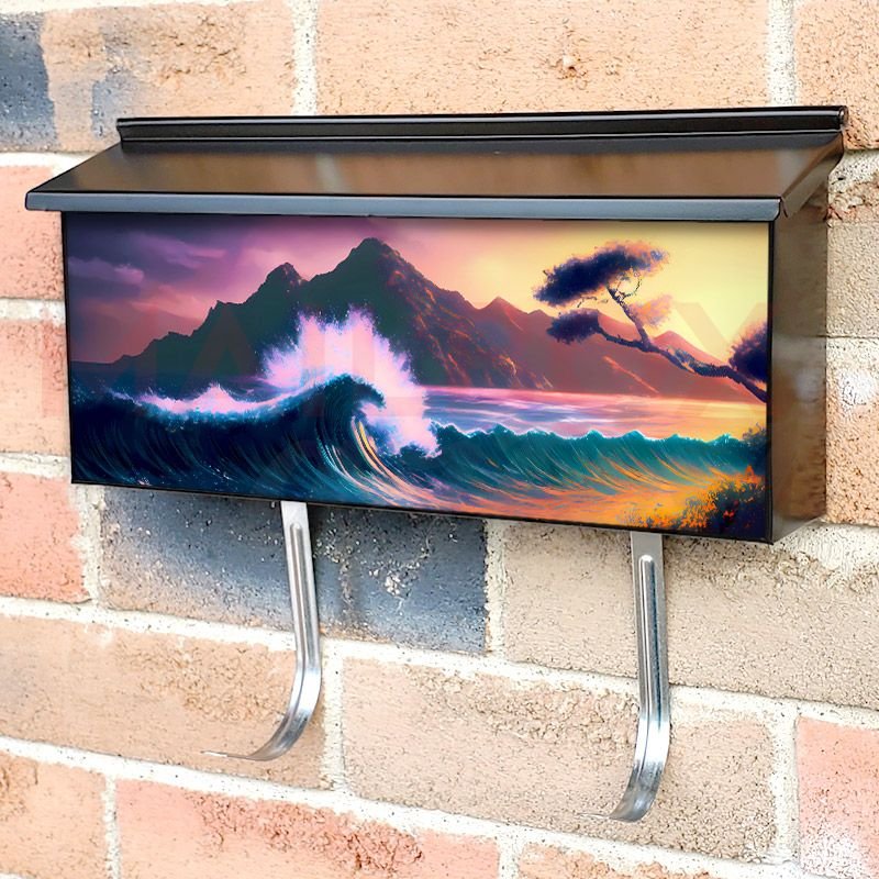Applying your Colorful Tropical Waves townhouse / ranch mailbox cover it’s pretty easy to convert your mailbox to a special and unique item. These covers require a flat surface, so they work with townhouse / ranch mailboxes that do not have any embossed decoration or signs. Magnetic mailbox covers work with steel boxes, for aluminum and plastic boxes we offer the self-adhesive vinyl covers. In case your mailbox doesn’t work with these covers, you can purchase the preinstalled cover on a brand new mailbox as well. Also, you can create your custom townhouse / ranch mailbox cover using you own pictures, adding your name, street number, etc.