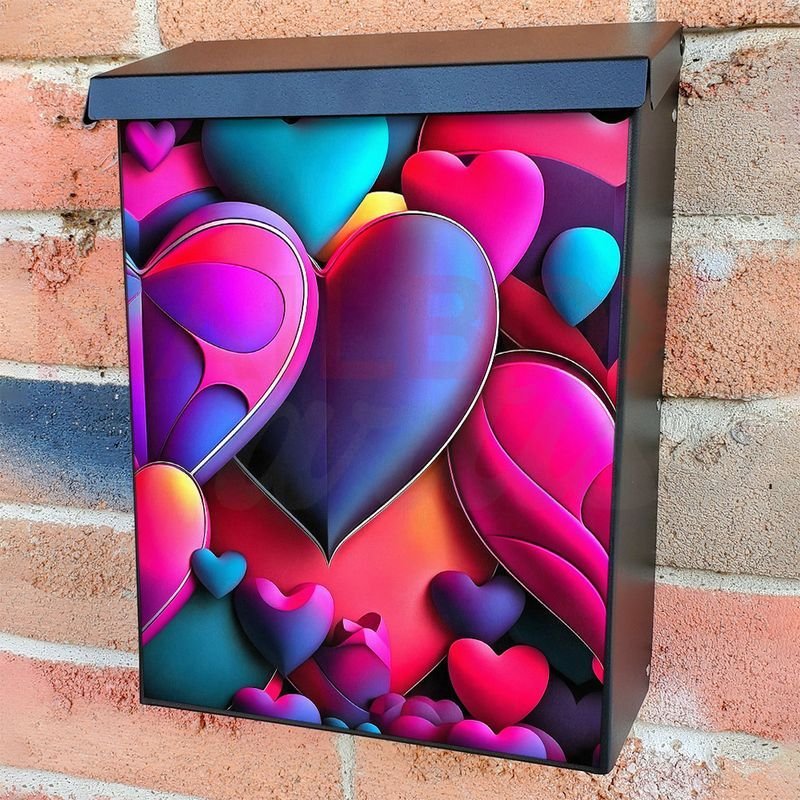 With this Colorful Valentine’s Hearts #3 colonial mailbox cover it’s pretty easy to convert your mailbox to a special and unique item. These covers require a flat surface, so they work with colonial mailboxes that do not have any embossed decoration or signs. In case your mailbox doesn’t work with these covers, you can purchase the preinstalled cover on a brand new mailbox as well. Also, you can create your custom colonial mailbox cover using you own pictures, adding your name, street number, etc.