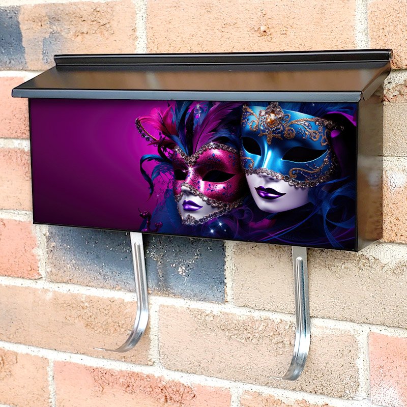 Applying your Colorful Venetian Carnival Masks townhouse / ranch mailbox cover it’s pretty easy to convert your mailbox to a special and unique item. These covers require a flat surface, so they work with townhouse / ranch mailboxes that do not have any embossed decoration or signs. Magnetic mailbox covers work with steel boxes, for aluminum and plastic boxes we offer the self-adhesive vinyl covers. In case your mailbox doesn’t work with these covers, you can purchase the preinstalled cover on a brand new mailbox as well. Also, you can create your custom townhouse / ranch mailbox cover using you own pictures, adding your name, street number, etc.