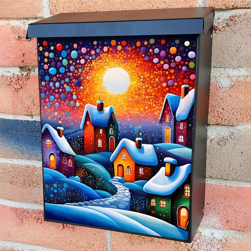 This Colorful Winter Village mailbox design was created by Krisztina Soos