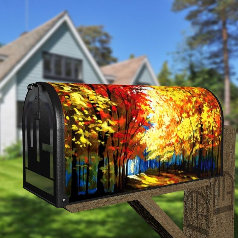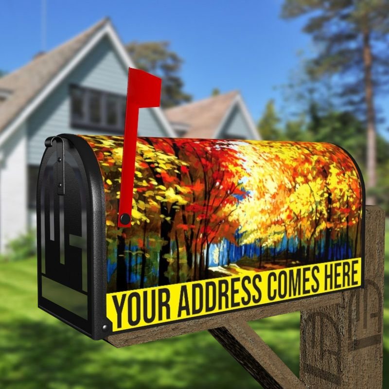 Grab this creative Colors of Fall rural/curbside/farm mailbox cover as self adhesive vinyl or magnetic cover. Our magnetic covers have the magnetic surface under the whole design, not only two magnet strips like in cheaper products. We also offer both the self adhesive and the magnetic covers with regular opaque white vinyl or reflective vinyl which works the same way as the licence plates or road signs; pretty visible at night. We make these covers for both large and small mailboxes.