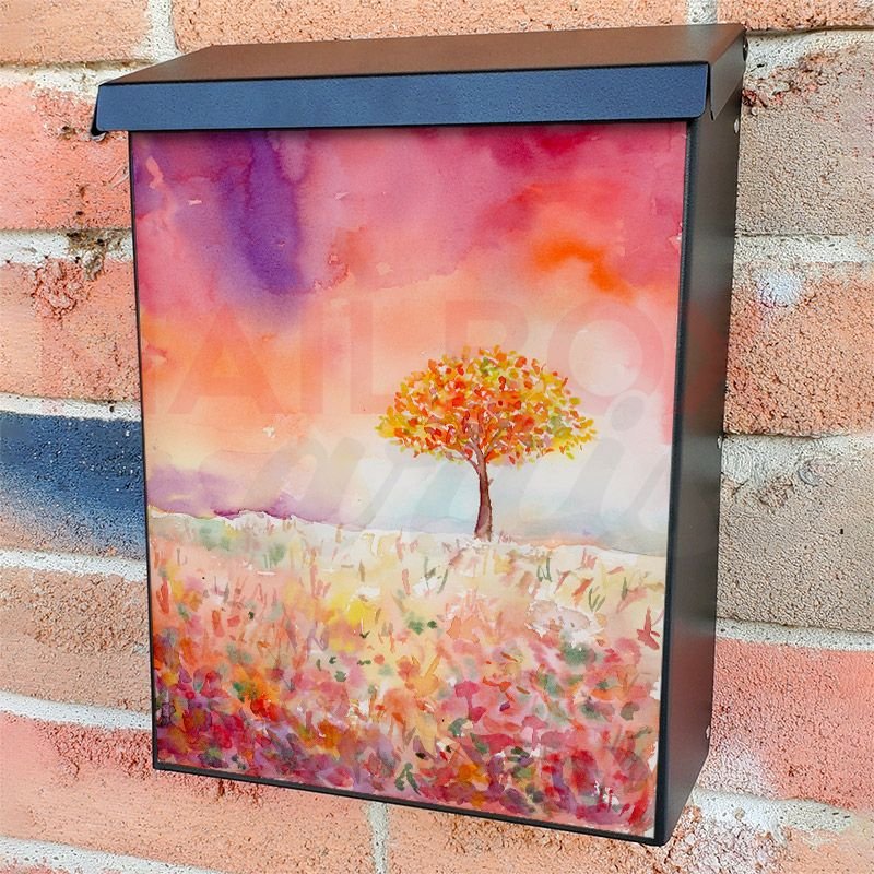 With this Colors of the Autumn #2 colonial mailbox cover it’s pretty easy to convert your mailbox to a special and unique item. These covers require a flat surface, so they work with colonial mailboxes that do not have any embossed decoration or signs. Magnetic mailbox covers work with steel colonial boxes only, while self-adhesive vinyl covers are available for aluminum, plastic and steel boxes. We also offer both self-adhesive and magnetic covers with regular opaque white vinyl or reflective vinyl, which works similarly to license plates or road signs. The reflective option makes the entire cover’s surface reflective, ensuring visibility at night. In case your mailbox doesn’t work with these covers, you can purchase the preinstalled cover on a brand new mailbox as well. Also, you can create your custom colonial mailbox cover using you own pictures, adding your name, street number, etc.