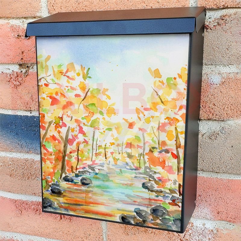 With this Colors of the Autumn #3 colonial mailbox cover it’s pretty easy to convert your mailbox to a special and unique item. These covers require a flat surface, so they work with colonial mailboxes that do not have any embossed decoration or signs. Magnetic mailbox covers work with steel colonial boxes only, while self-adhesive vinyl covers are available for aluminum, plastic and steel boxes. We also offer both self-adhesive and magnetic covers with regular opaque white vinyl or reflective vinyl, which works similarly to license plates or road signs. The reflective option makes the entire cover’s surface reflective, ensuring visibility at night. In case your mailbox doesn’t work with these covers, you can purchase the preinstalled cover on a brand new mailbox as well. Also, you can create your custom colonial mailbox cover using you own pictures, adding your name, street number, etc.