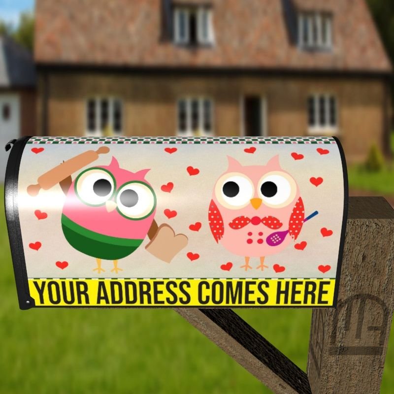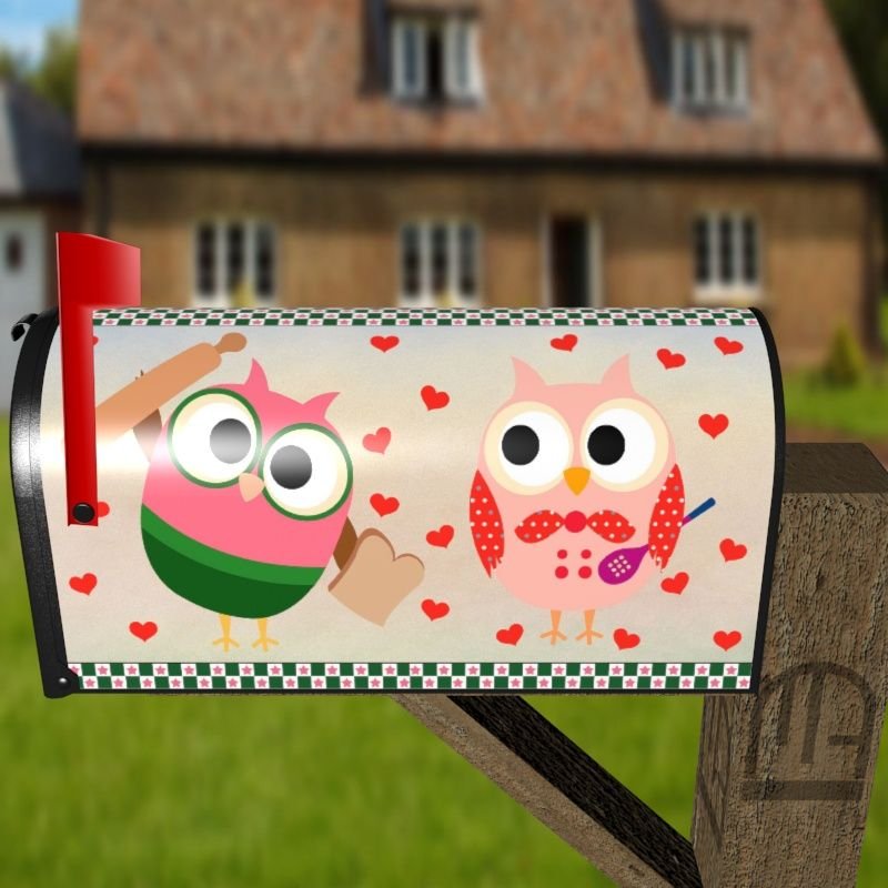 Grab this creative Cooking Owl #3 rural/curbside/farm mailbox cover as self adhesive vinyl or magnetic cover. Our magnetic covers have the magnetic surface under the whole design, not only two magnet strips like in cheaper products. We also offer both the self adhesive and the magnetic covers with regular opaque white vinyl or reflective vinyl which works the same way as the licence plates or road signs; pretty visible at night. We make these covers for both large and small mailboxes.