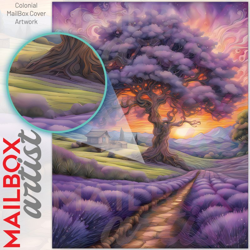 Cottage and Tree in the Lavenders Colonial Mailbox Cover
