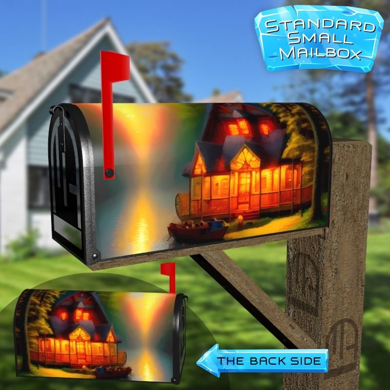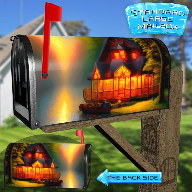 Dressing up your rural farm mailbox with the Cottage at the Lake mailbox cover is an easy way to convert it into a unique and special item. These covers require a smooth surface, so they are compatible with rural farm mailboxes that do not have any embossed decorations or signs. Magnetic mailbox covers work with steel boxes only, while self-adhesive vinyl covers are available for aluminum, plastic and steel boxes. If your mailbox is not compatible with these covers, you can purchase a brand new mailbox with a preinstalled cover. Additionally, you have the option to create a custom rural farm mailbox cover with your own pictures, name, street number, etc.