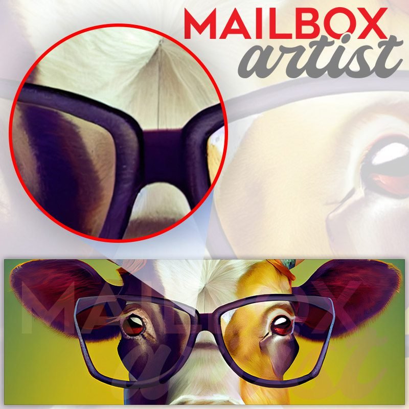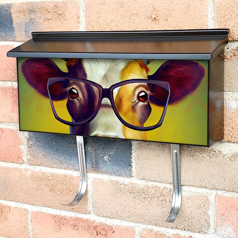 Applying your Cow in Eyeglasses #3 townhouse / ranch mailbox cover it’s pretty easy to convert your mailbox to a special and unique item. These covers require a flat surface, so they work with townhouse / ranch mailboxes that do not have any embossed decoration or signs. Magnetic mailbox covers work with steel boxes, for aluminum and plastic boxes we offer the self-adhesive vinyl covers. In case your mailbox doesn’t work with these covers, you can purchase the preinstalled cover on a brand new mailbox as well. Also, you can create your custom townhouse / ranch mailbox cover using you own pictures, adding your name, street number, etc.