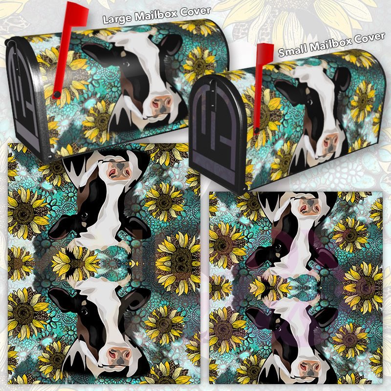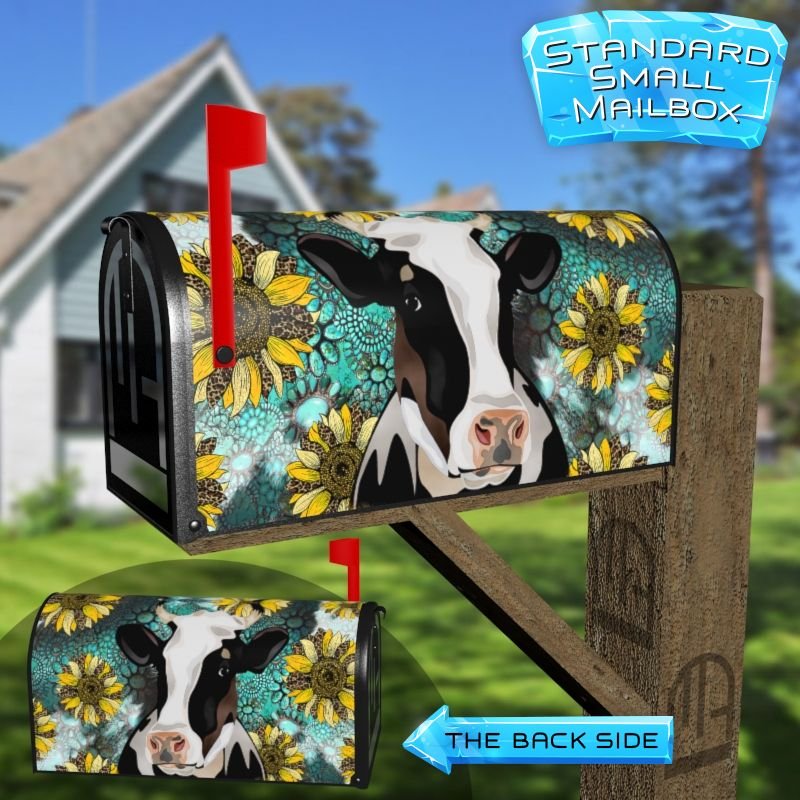 Dressing up your rural farm mailbox with the Cow with Sunflowers mailbox cover is an easy way to convert it into a unique and special item. These covers require a smooth surface, so they are compatible with rural farm mailboxes that do not have any embossed decorations or signs. Magnetic mailbox covers work with steel boxes only, while self-adhesive vinyl covers are available for aluminum, plastic and steel boxes. If your mailbox is not compatible with these covers, you can purchase a brand new mailbox with a preinstalled cover. Additionally, you have the option to create a custom rural farm mailbox cover with your own pictures, name, street number, etc.