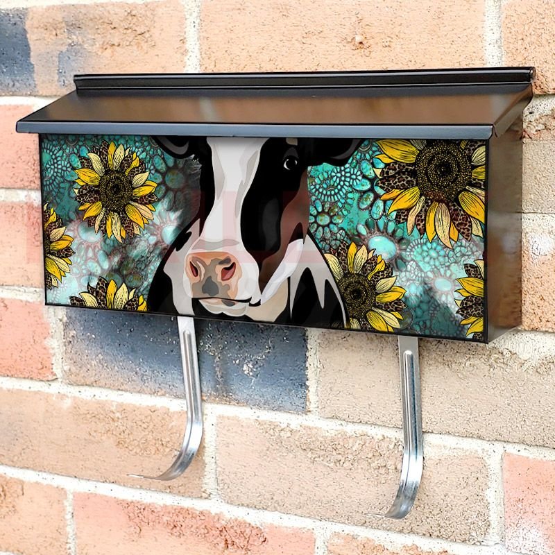 Applying your Cow with Sunflowers townhouse / ranch mailbox cover it’s pretty easy to convert your mailbox to a special and unique item. These covers require a flat surface, so they work with townhouse / ranch mailboxes that do not have any embossed decoration or signs. Magnetic mailbox covers work with steel boxes, for aluminum and plastic boxes we offer the self-adhesive vinyl covers. In case your mailbox doesn’t work with these covers, you can purchase the preinstalled cover on a brand new mailbox as well. Also, you can create your custom townhouse / ranch mailbox cover using you own pictures, adding your name, street number, etc.