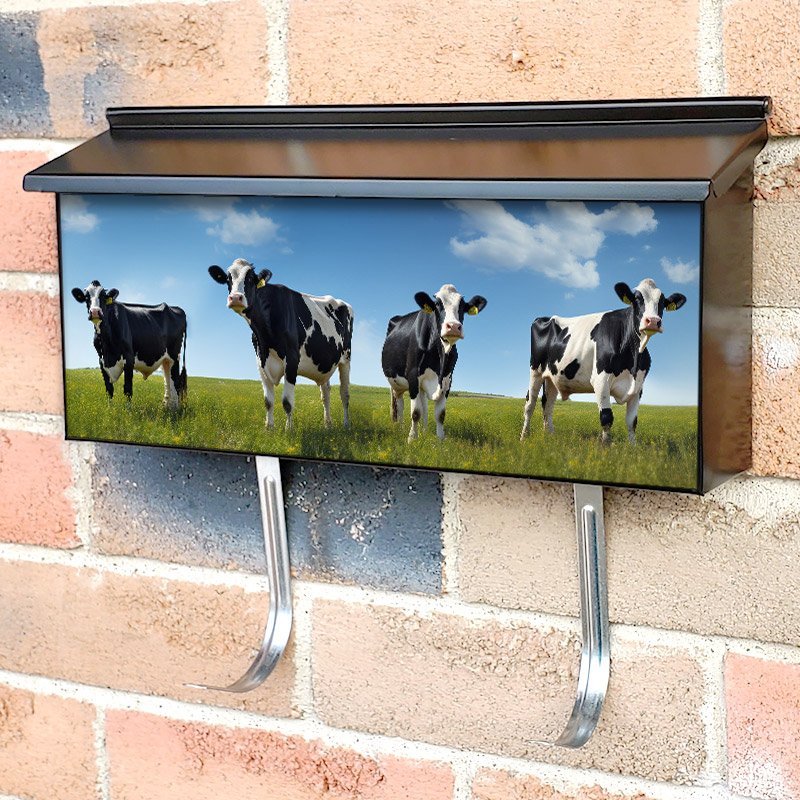 Applying your Cows In Summer Green Meadow townhouse / ranch mailbox cover it’s pretty easy to convert your mailbox to a special and unique item. These covers require a flat surface, so they work with townhouse / ranch mailboxes that do not have any embossed decoration or signs. Magnetic mailbox covers work with steel boxes, for aluminum and plastic boxes we offer the self-adhesive vinyl covers. In case your mailbox doesn’t work with these covers, you can purchase the preinstalled cover on a brand new mailbox as well. Also, you can create your custom townhouse / ranch mailbox cover using you own pictures, adding your name, street number, etc.