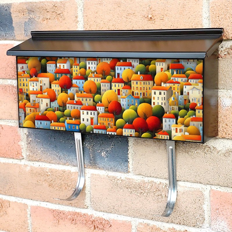 Applying your Cozy Autumn City townhouse / ranch mailbox cover it’s pretty easy to convert your mailbox to a special and unique item. These covers require a flat surface, so they work with townhouse / ranch mailboxes that do not have any embossed decoration or signs. Magnetic mailbox covers work with steel boxes, for aluminum and plastic boxes we offer the self-adhesive vinyl covers. In case your mailbox doesn’t work with these covers, you can purchase the preinstalled cover on a brand new mailbox as well. Also, you can create your custom townhouse / ranch mailbox cover using you own pictures, adding your name, street number, etc.